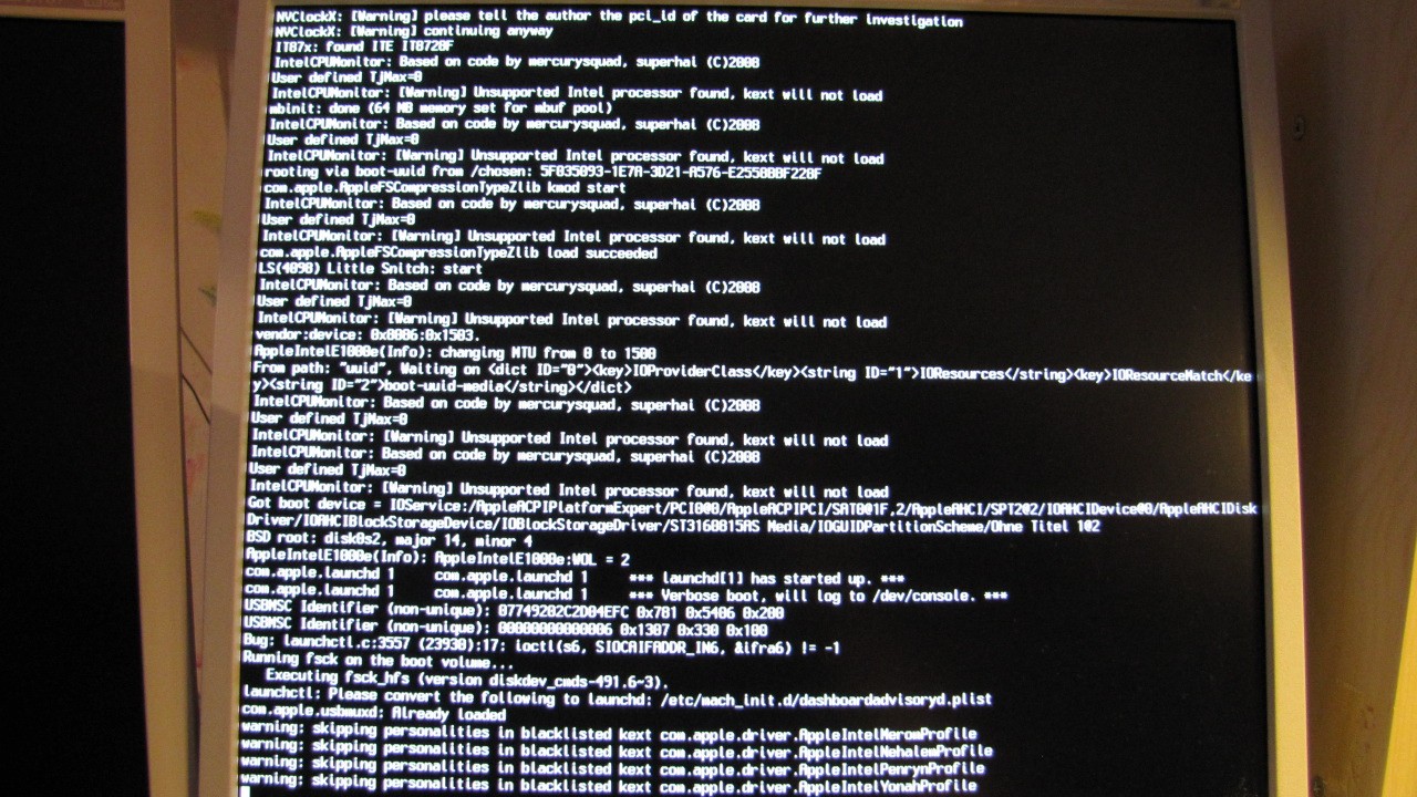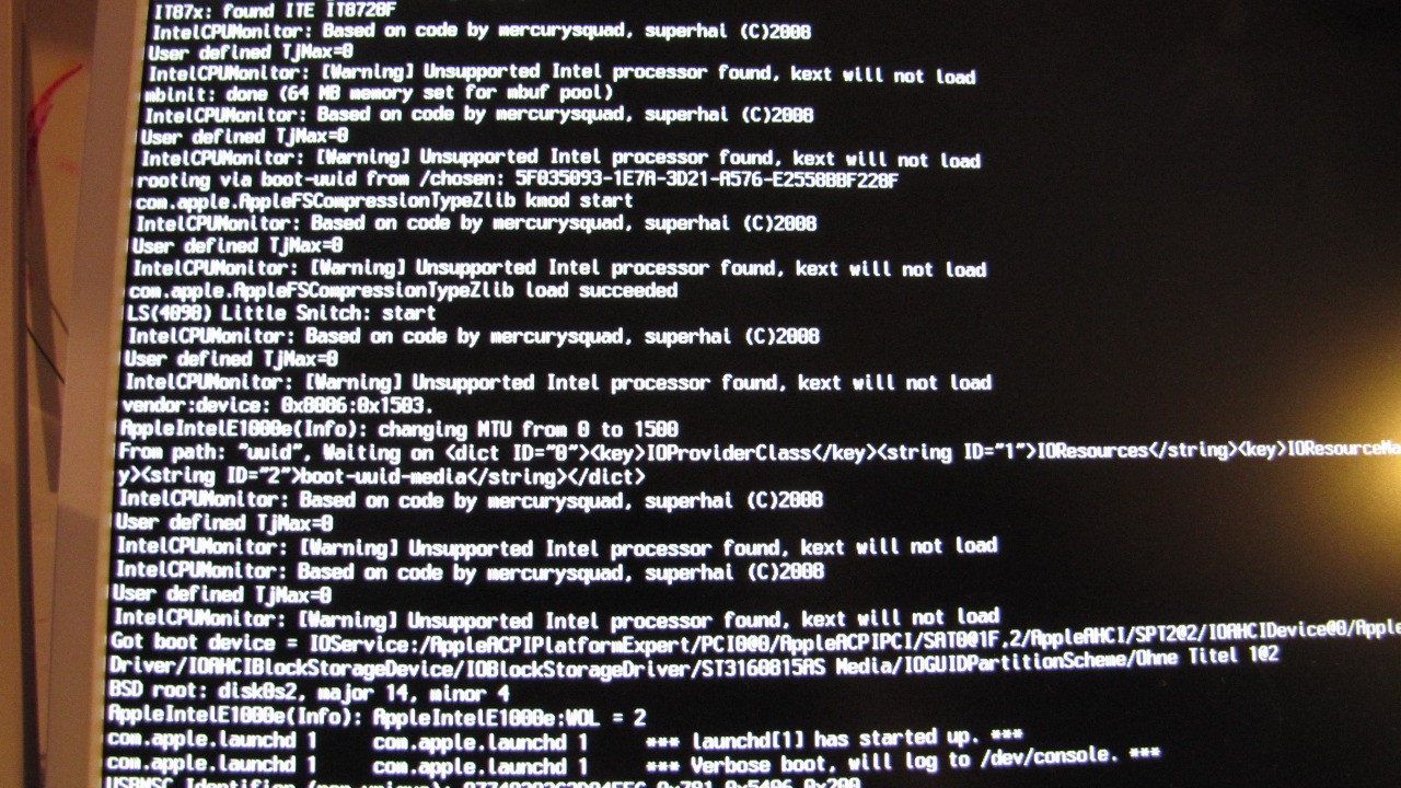 Vielleicht werdet ihr ja aus den von mir nachgeschobenen Bildschimfotos vom Verbose-Start schlau und könnt mir was dazu sagen. -