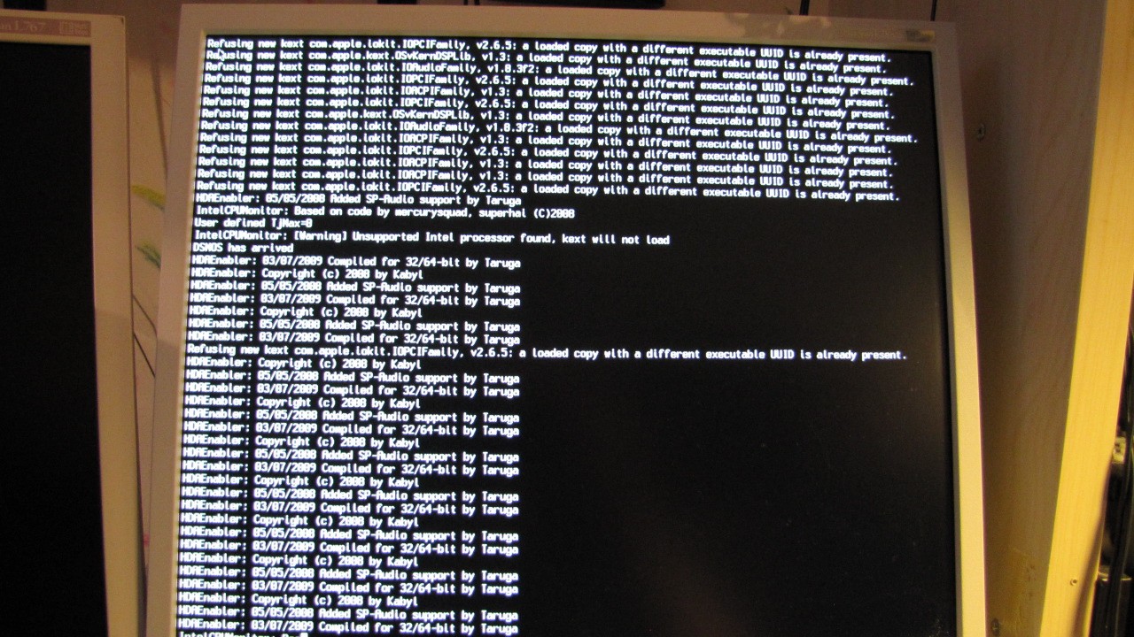 2016-06-11 19:51:06 kernel HDAEnabler: 05/05/2008 Added SP-Audio support by TarugaRefusing new kext com.apple.iokit.IOPCIFamily, v2.6.5: a loaded copy with a different executable UUID is already present.
