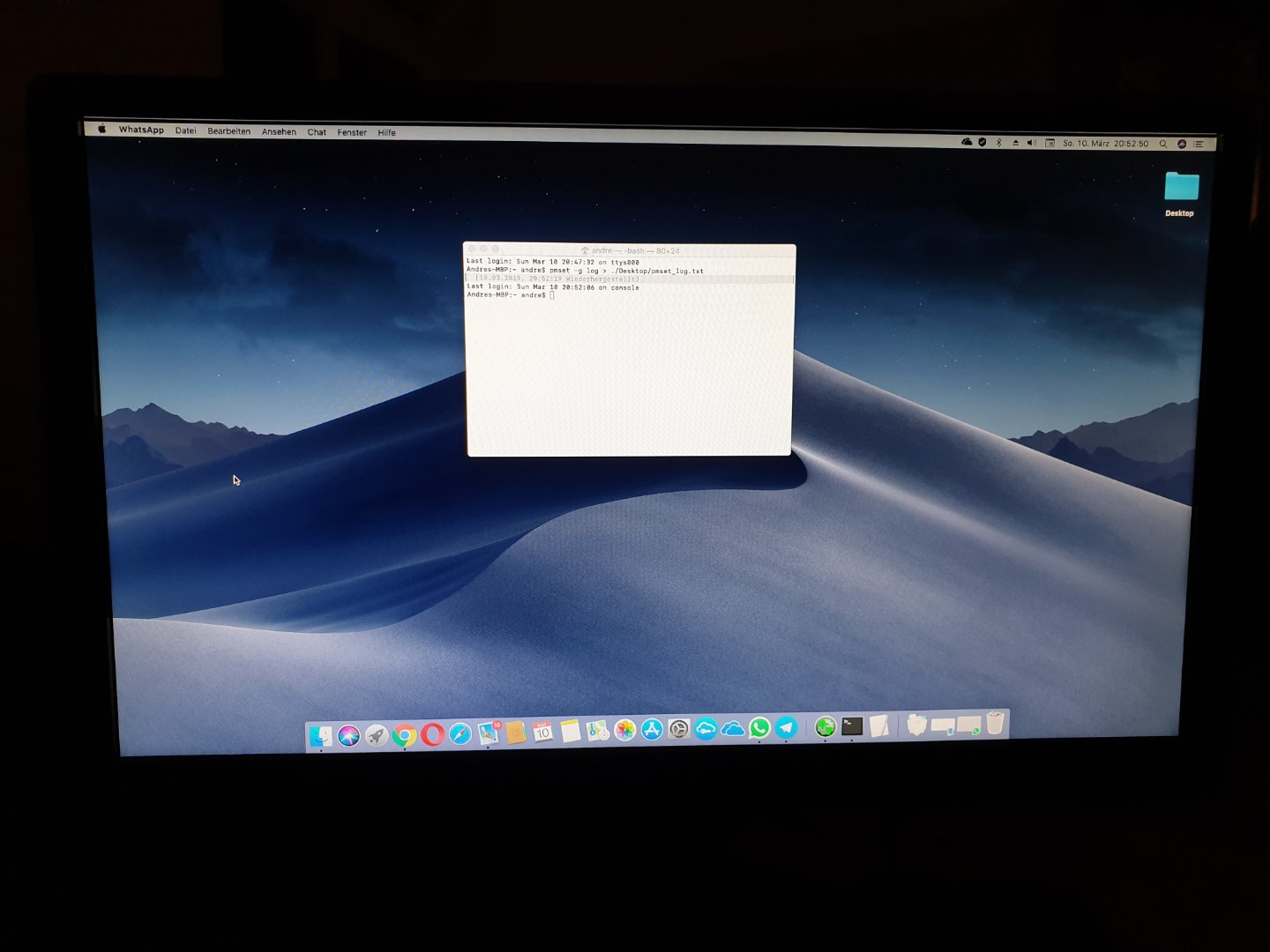 die Entertaste drücke, ist nach dem erfolglosen Ruhezustand die erstellte pmset_log.txt vom Desktop wieder verschwunden.