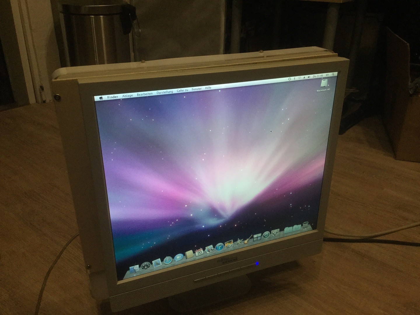 Das Display war tot. Er ließ sich aber einschalten und Festplattengeräusch war vorhanden.