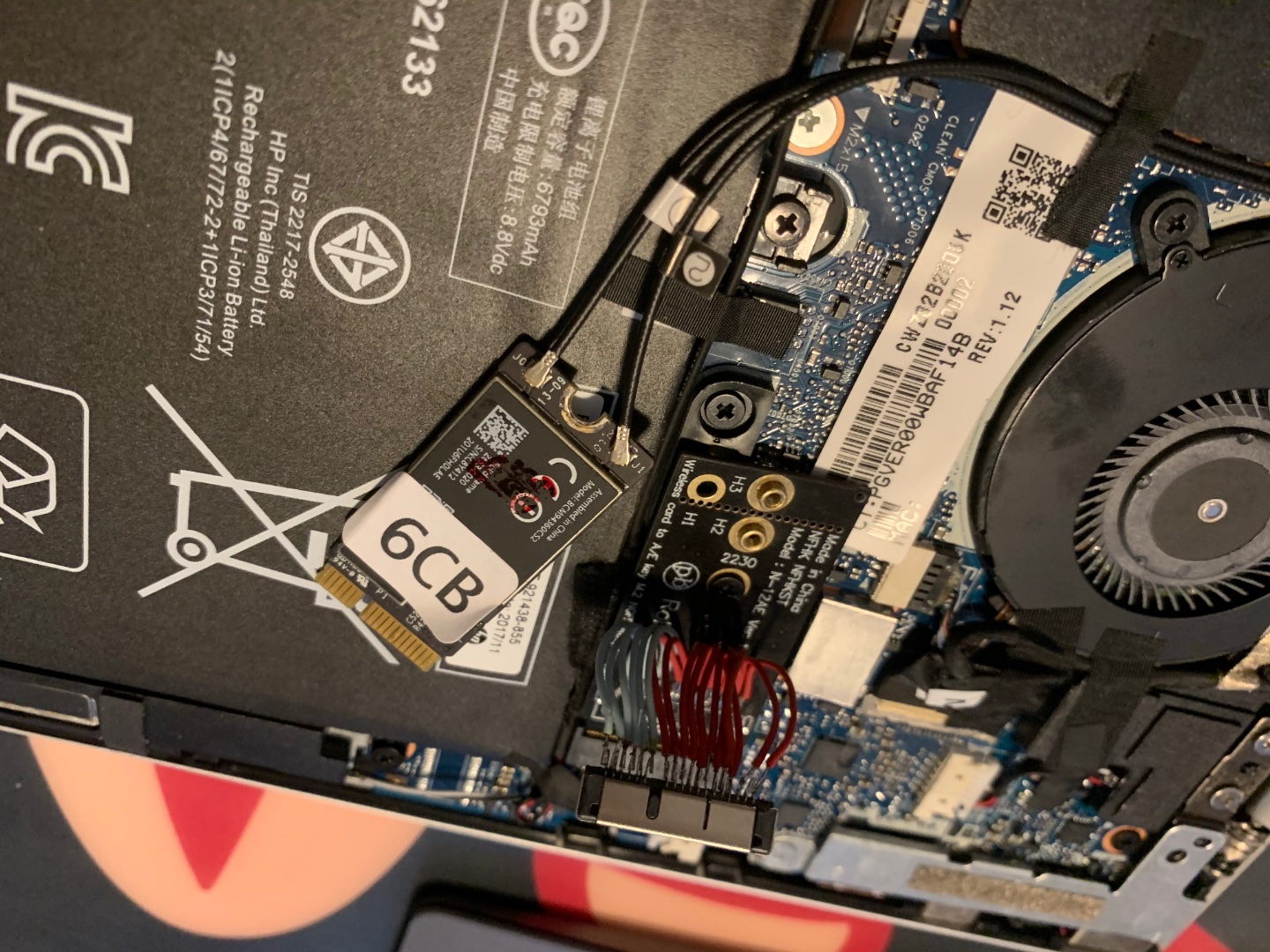 Die Intel Wlan M.2 Karte habe ich durch eine DW 1830 ersetzt und trotz widersprüchlichen Informationen im Netz hat der HP Laptop keine Wlan-Bios Sperre . Hierfür musste ich lediglich eine 3. Antenne im Gehäuse unterbringen.