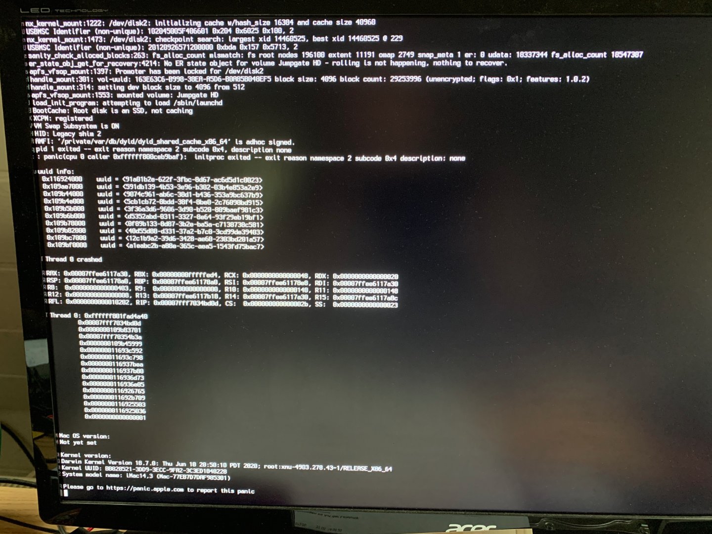 Leider bootet er die bestehende Mojave Installation (macOS 10.14.6, APFS von interner SSD) nicht, er bleibt nach den "Seeds" hängen.