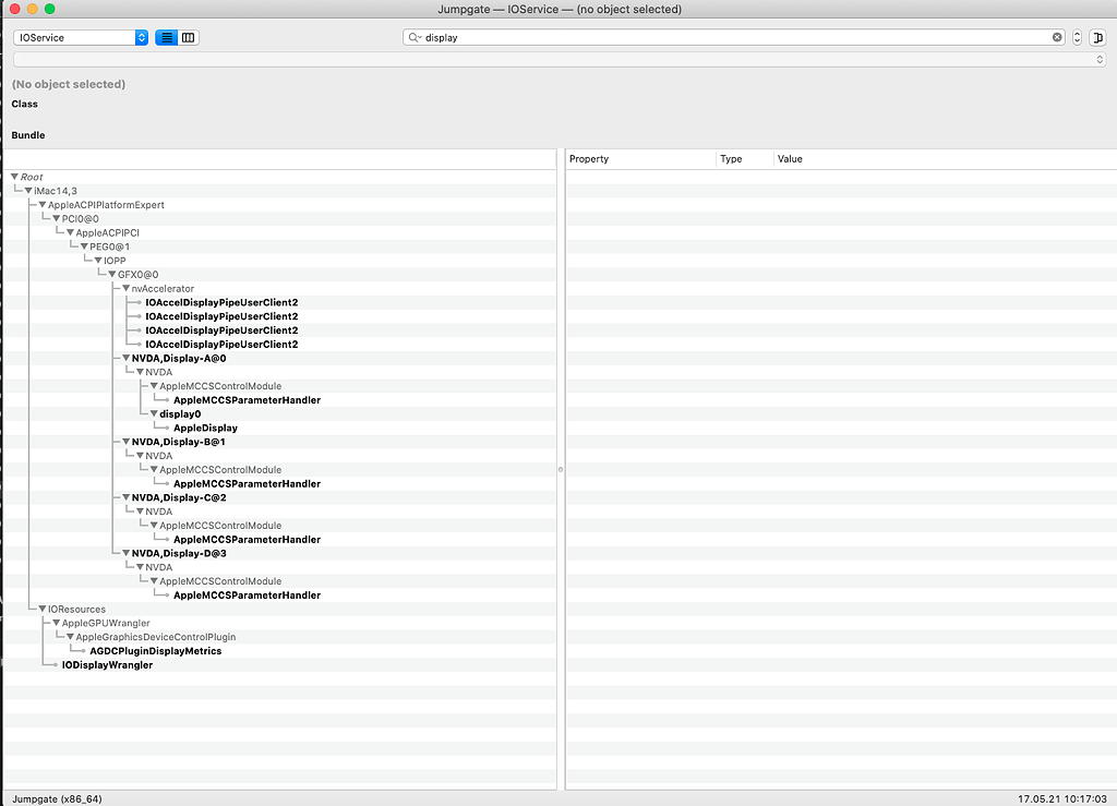 In der IORegistry sieht das mit der Grafikkarte so aus:
