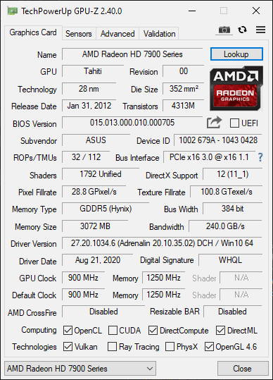 ich musste leider meine alte Radeon280x durch eine alte Karte Radeon (wird als AMD Radeon HD 8950 3 GB erkannt) ersetzten, da die leider defekt ging.