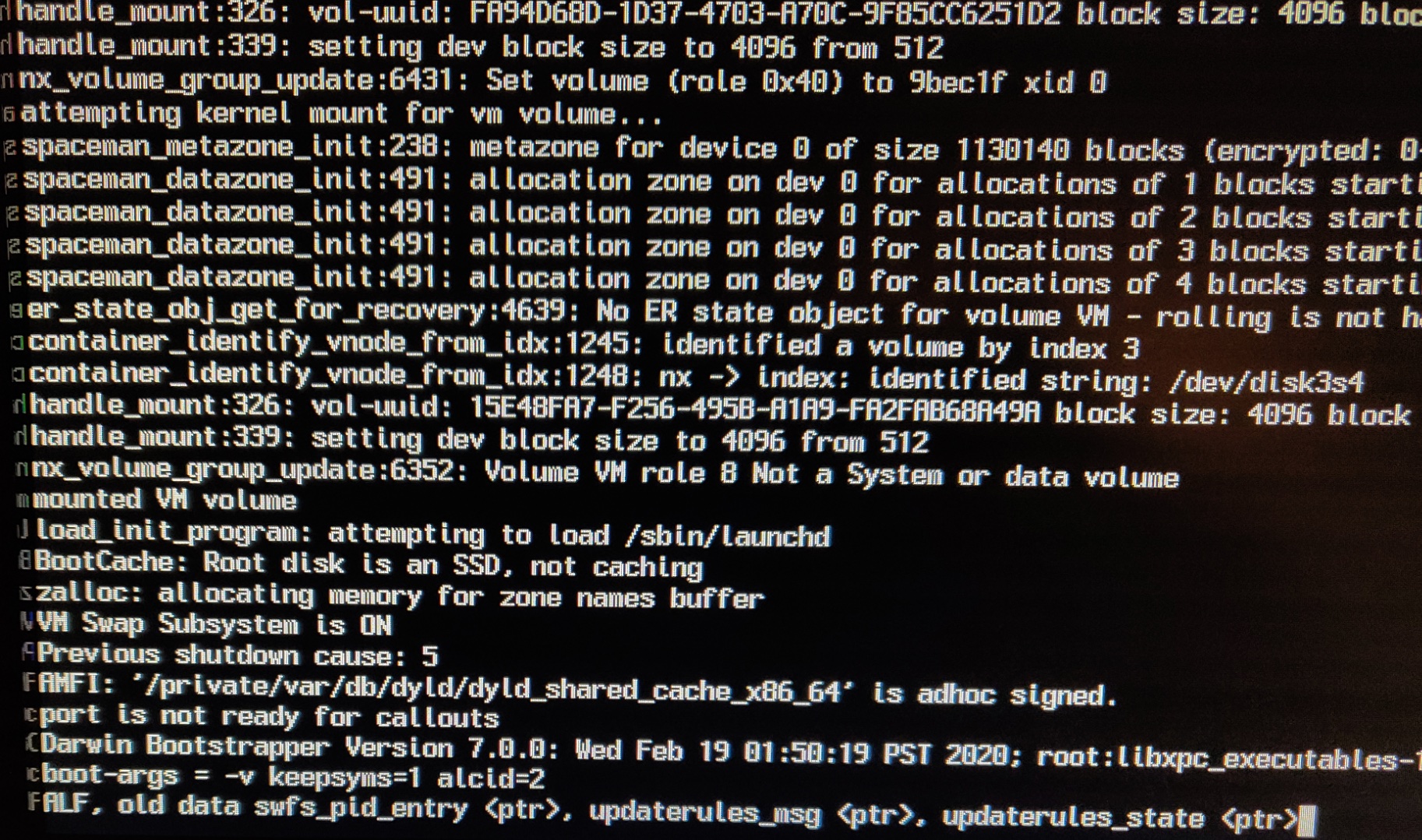 Mit Ozmosis Z77DS3H.11a_Rev_1_1-XMAX leider wieder derselbe Kext-Stall wie beim Mojave-Update (4x 240 Sekunden).