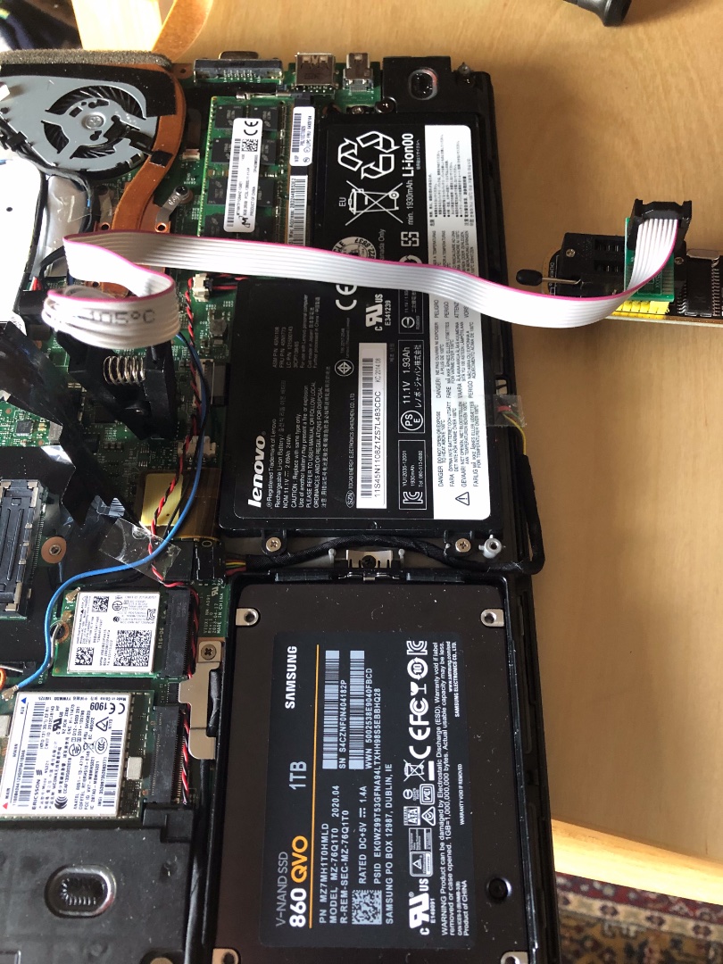 Ich versuche seit einer Weile mein X240 Bios zu dumpen, aber irgendwas scheint nicht richtig zu funktionieren. Auf dem Bord verbaut ist ein WINDBOND 25Q128FVSQ.