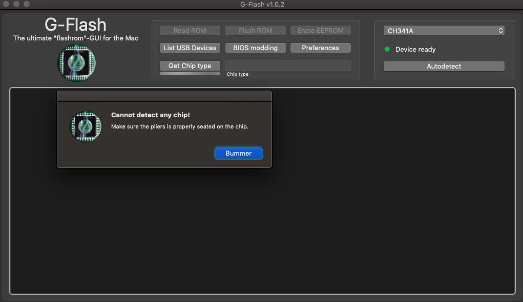 Hö? Ist doch ein CH341 oder? Mach mal in G-Flash bitte "Liste USB Geräte".