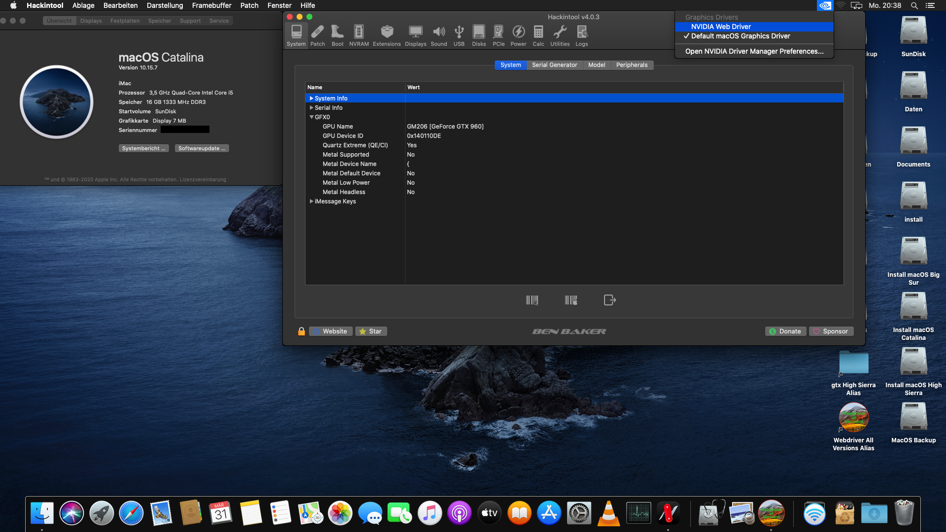 Da ich ja auch OpenGL und Metal Support haben möchte in Big Sur für die GTX 960?