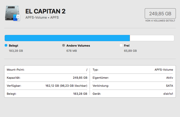 Warum ist da so viel belegt wenn angeblich 162 GB Verfügbar sind?
