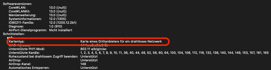 Was mich wundert das meine WiFi & BT Karte "BCM943602BAED" nicht erkannt wird!? (siehe Screenshot)