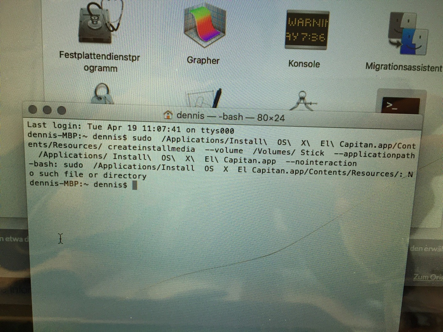 Alles anzeigenDer Terminal-Befehl ist falsch.