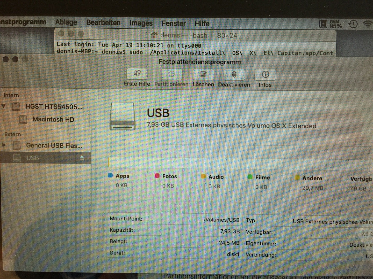 Ich habe in mit unibeast erstellt da auf meinem Mac das fedtpalttendienstprogramm etwas anders aussieht als die jeweiligen beschriebenen bilder