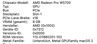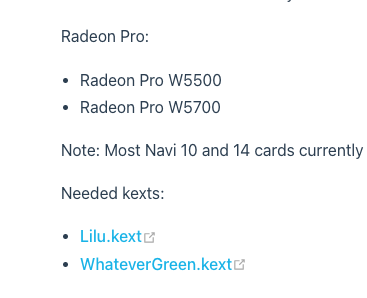 NootRX kext macht die ganze Sache nicht besser, da dein Pro W5700 schon native von macOS unterstützt wird.
