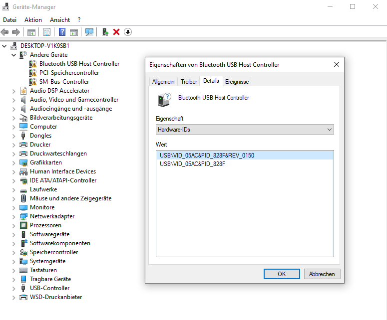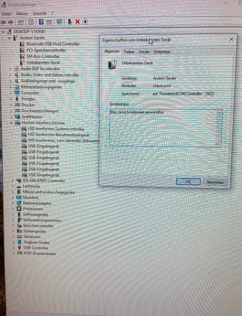 Im Gerätemanger erscheint nun ein Device der in der Vergangenheit nicht angezeigt wurde. Wird gemeldet als Unbekanntes Gerät. Siehe Bild.