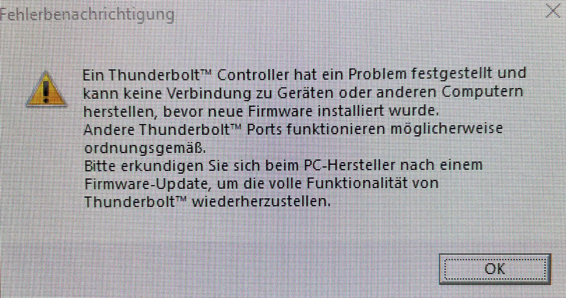 Bitte erkundigen Sie sich beim PC-Hersteller nach einem Firmware-Update, um die volle Funktionalitat von Thunderbolt™™ wiederherzustellen.