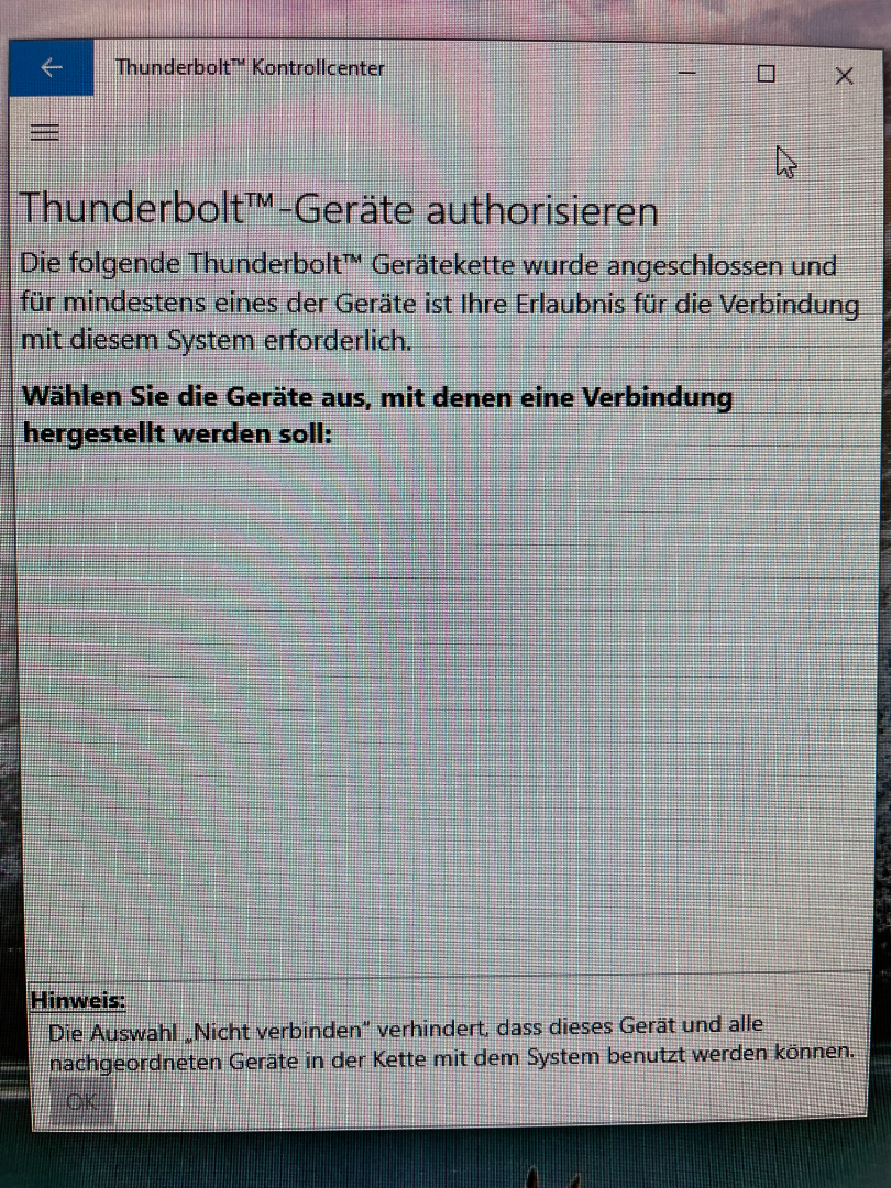 Danke! Hab ein bisschen mit den Bios Settings experimentiert. Leider keine Änderung. Es wundert mich echt. Das Mainboard ist extra dafür ausgerichtet und unterstützt Thunderbolt. Ist mir ein Rätsel.