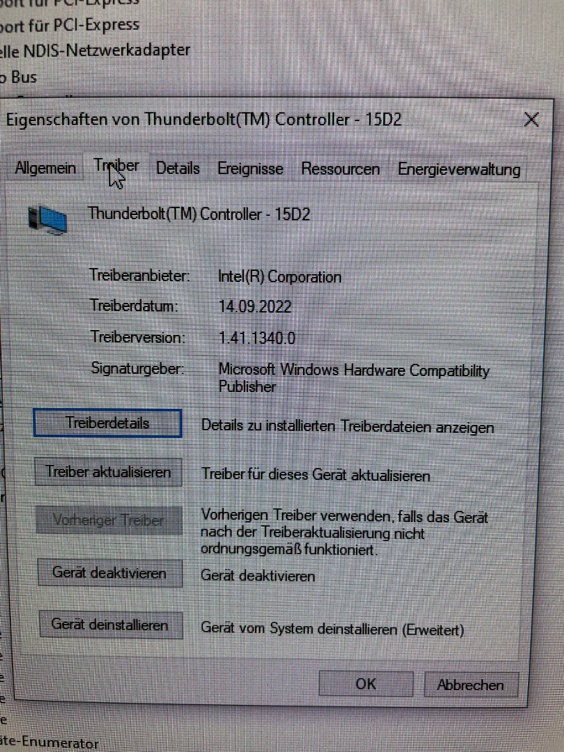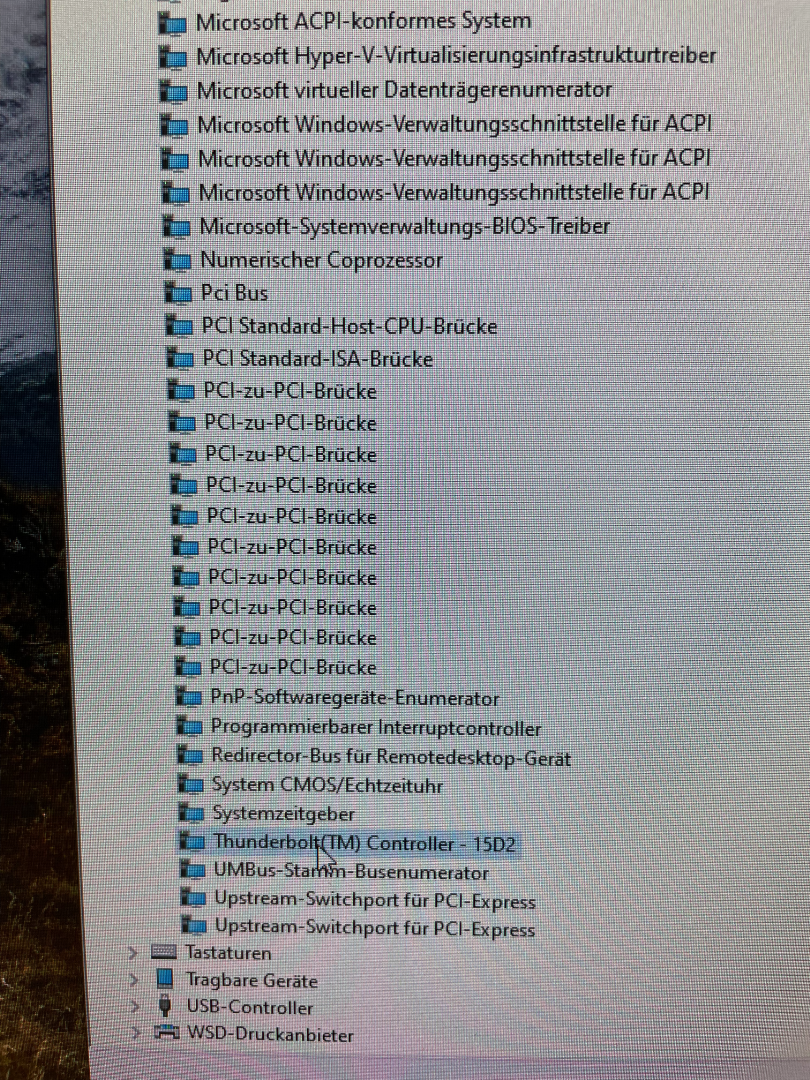 Der Thunderbolt Controller wird nun im Gerätemanager angezeigt. Siehe Bild.