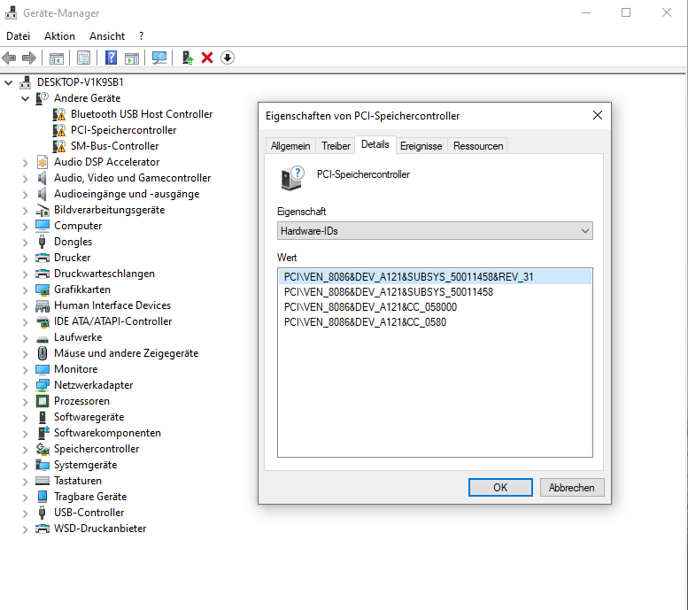 Der PCI Speichercontroller zeigt nach wie vor ein ! - diesen konnte ich nicht installieren und finde auch keinen Treiber derzeit.