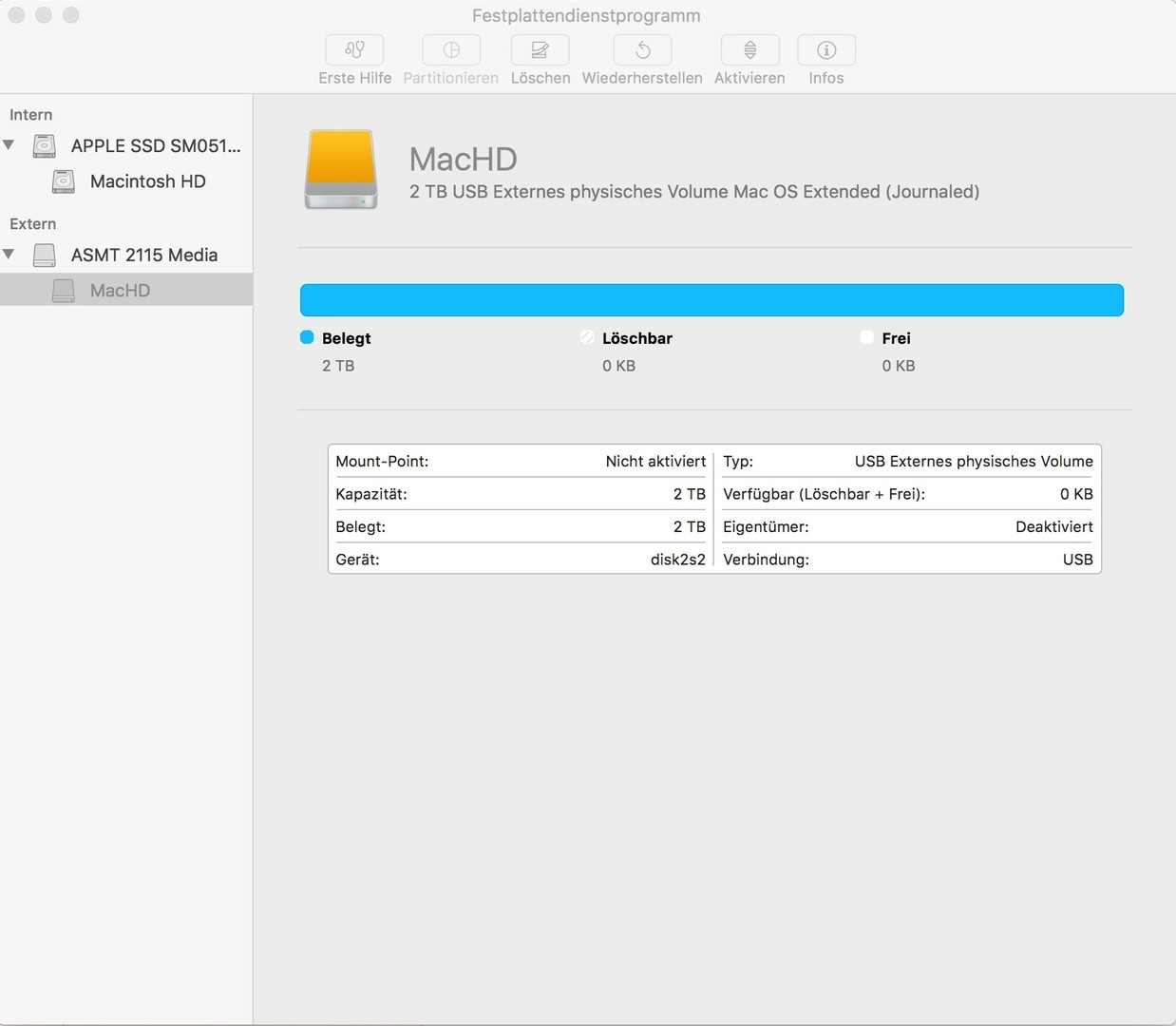 Laut Festplattenprogramm ist die deaktiviert. Lässt sich auch nicht mounten. Wird auch als voll angezeigt.