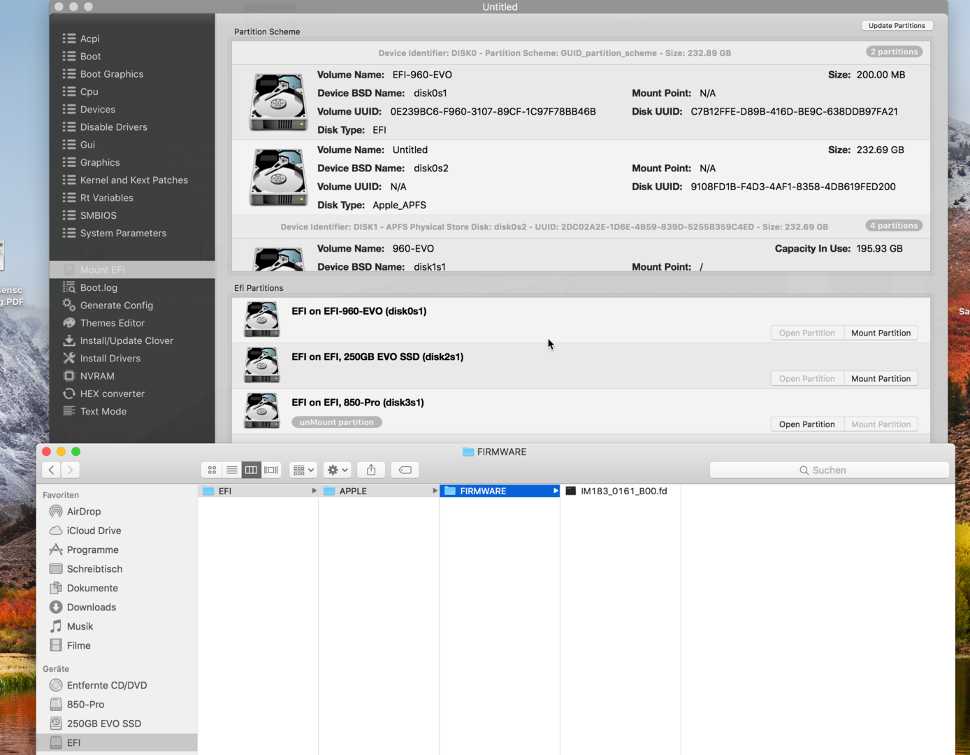 Keine Ahnung auf welcher EFI die drauf sein soll, kann nur die 960 EVO sein da die 850 EVO ein Time-Machine Backup ist und ich darauf nie sowas installiert habe.