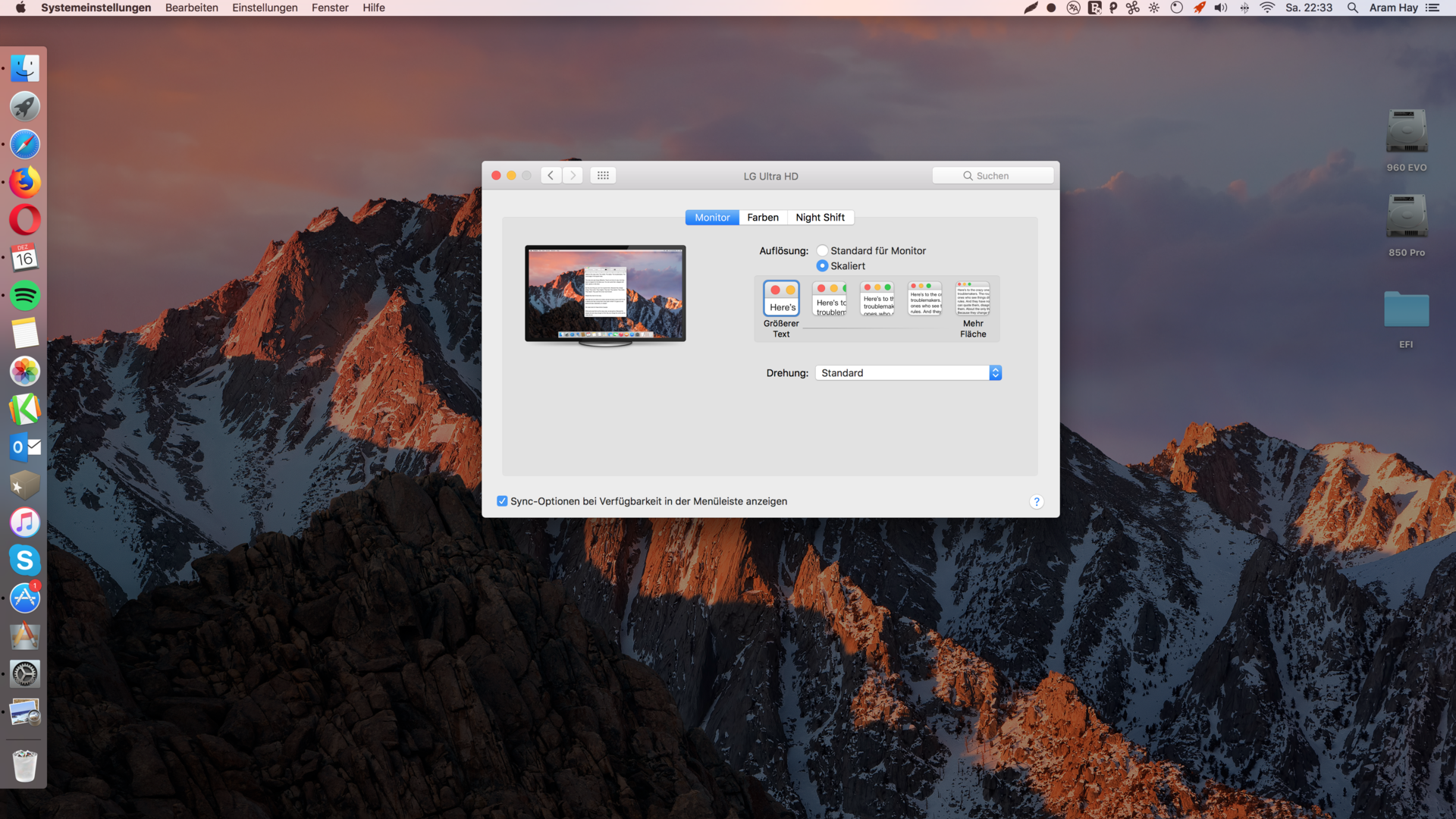 Beispielsweise siehst du hier ein Screenshot von mir in 1920x 1080p skaliert aber mit 4k Schärfe, was ich persönlich bei 27zoll als beste Schriftgröße finde bei 4k.