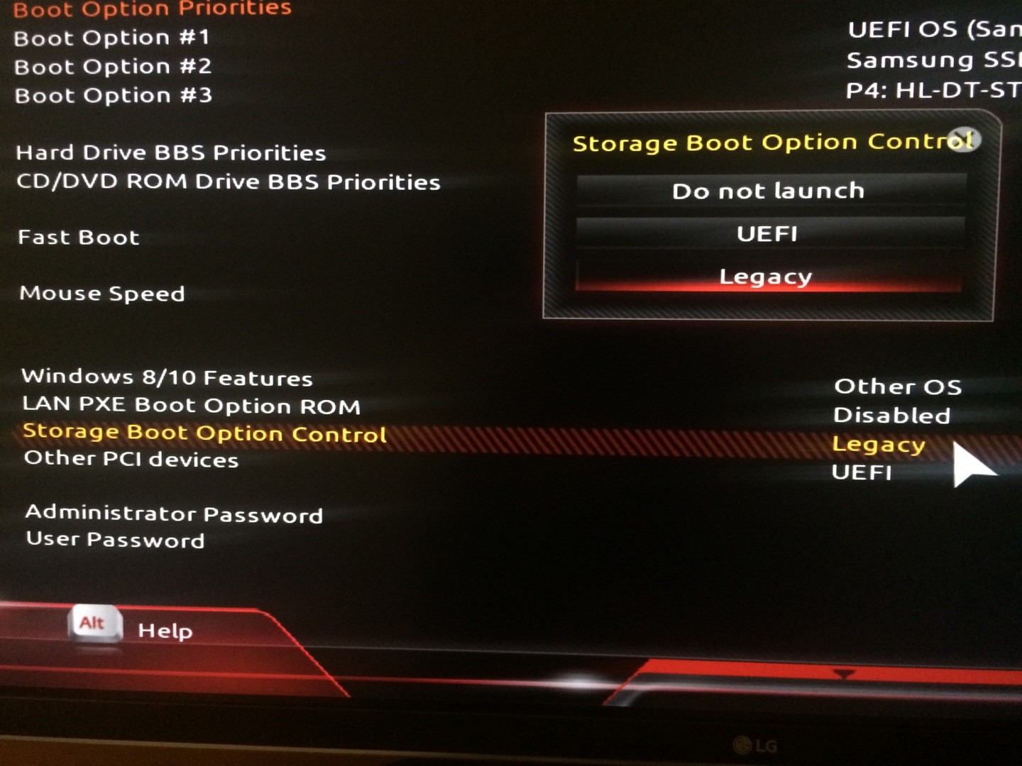- BIOS ---> Storage Boot Option Control
