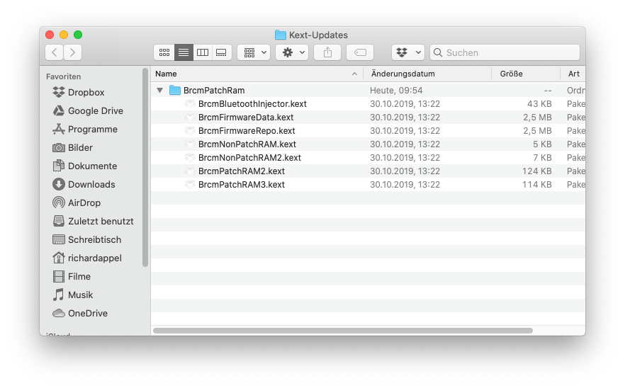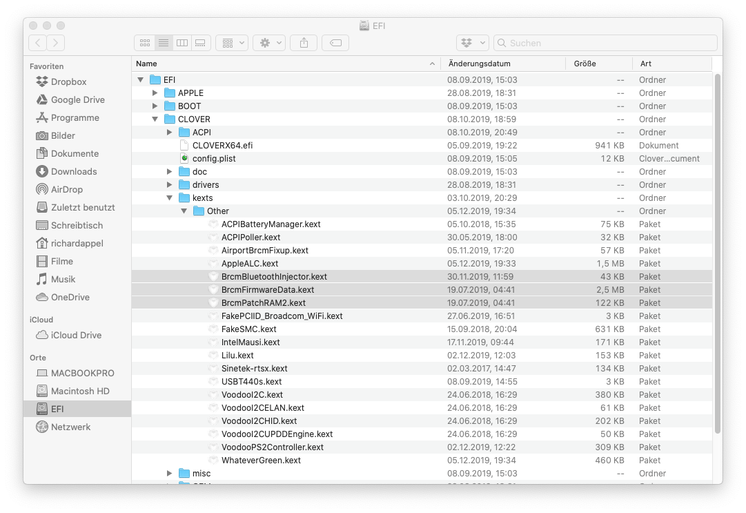 Wenn ich nur meine 3 markierten Kexte gegen die neuen ersetze dann habe ich nach dem Neustart kein Plan und BT mehr.