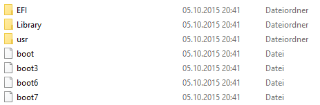 Wie gesagt wenn ich mit iBoot starte und auf meine Installation wechsle kommt kurz das Apfel Logo und dann nur noch ein grauer Bildschirm...