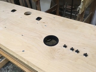 Schalter für Licht und Steckdosenleisten (drei Stück sind im inneren des Tisches).