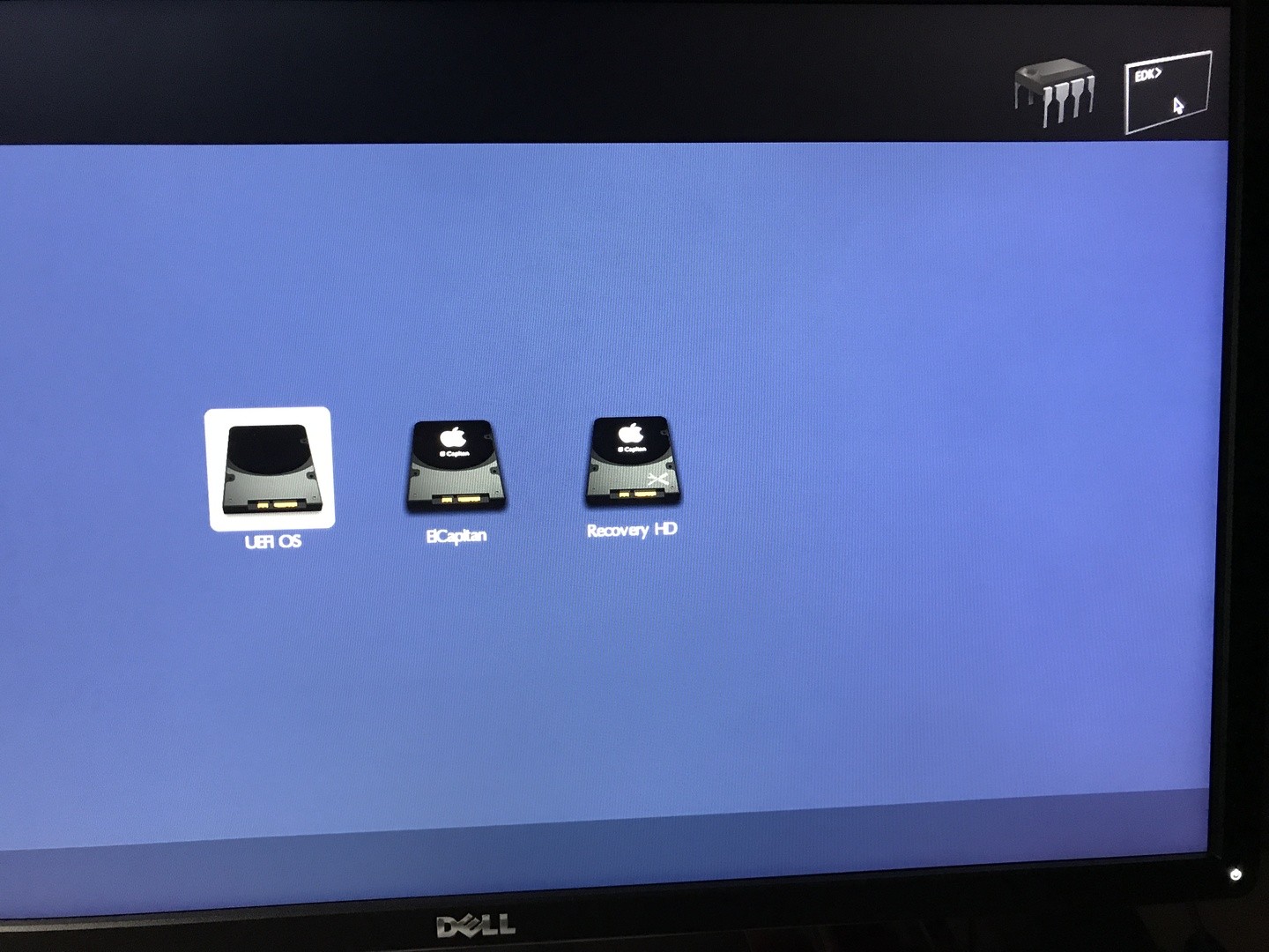 da passiert genau das gleiche. Ich versuche die ganze Zeit "ElCapitan" auszuwählen, nur beim Screenshot stand es auf UEFI OS. Ein Boot ist nicht möglich, habe auch RecoveryHD probiert. Immer mit dem gleichen Ergebnis. Sorry, das das jetzt so ein Akt ist ..