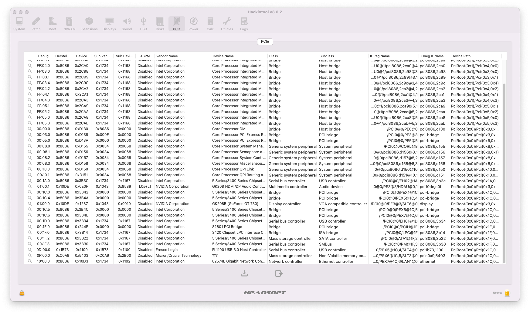 Jetzt habe ich nochmal in die Distro gebootet, dort sieht das entsprechend im Hackintool so aus: -