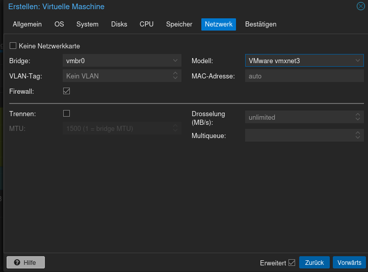 qemu lassen wir weg, gibt sonnst eine FehlermeldungWir geben ein: