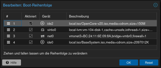 und Opencore-v20.iso das media=cdrom löschen