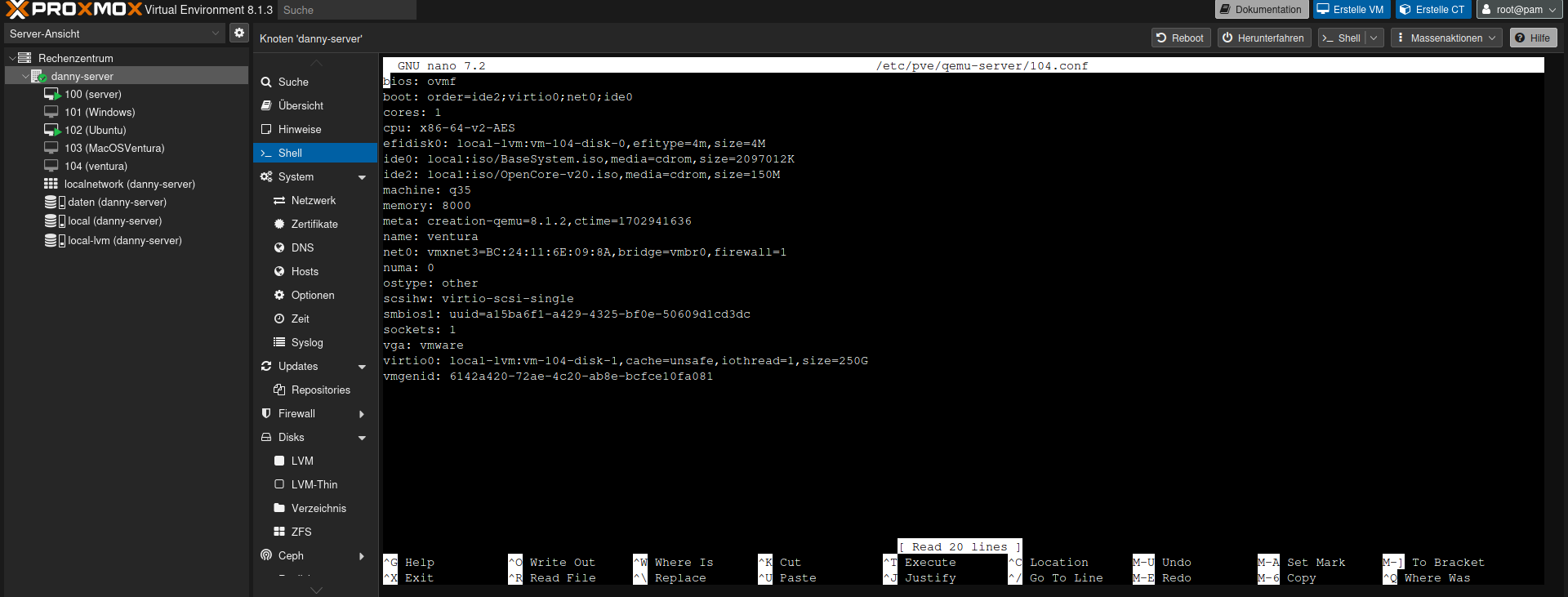 Wenn ihr Proxmox installiert habt, und auf