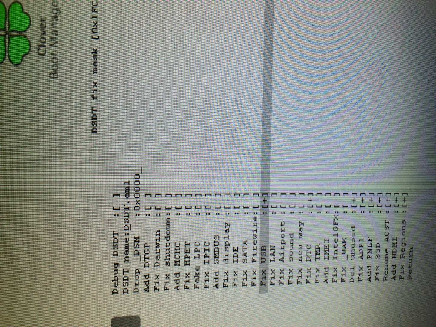 DSDT im Cloverbootmenü sieht wie folgt aus: