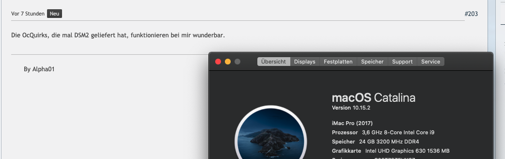Ich hab die Properties aus der anderen config.plist in diese eingefügt und sonst nix geändert, läuft also unter iMacPro1.1