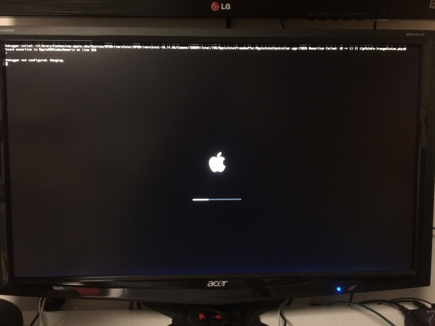 Daraufhin habe ich mir einen bootfähigen Stick mit Clover darauf erstellt und versucht, auf die Festplatte zuzugreifen, auf der ich bereits anfing El Capitan zu installieren. Ein Apple Logo auf schwarzem Hintergrund, dann ein Balken, der sich nicht ausfüllt - Stillstand.Kann mir jemand bei diesem Problem helfen?