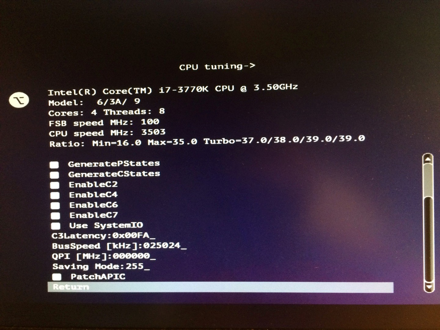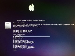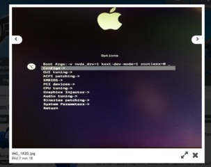 Der Verbose Mode müsste aktiviert sein, siehe Screenschot (Boot Args: -v ...) und beim booten sehe ich auch Computertext allerdings wird dann das Bild weiß und das bleibt dann so, ich warte jetzt ob sich was tut...