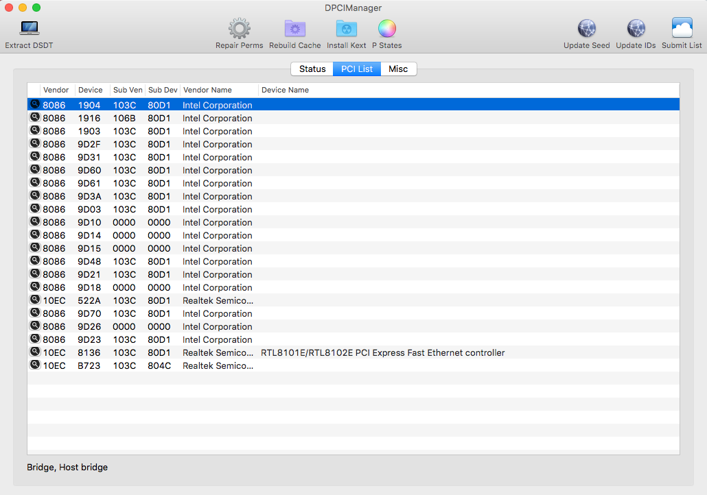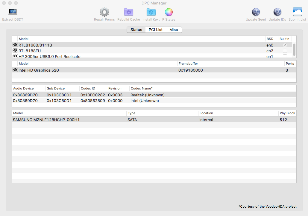 Anbei mal die Übersicht über die eingetragen Patches. Kexte in Verwendung sind: BrcmFirmwareData, BrcmFirmwareRepo, BrcmPatchRAM2 und FakePCIID_Broadcom_Wifi