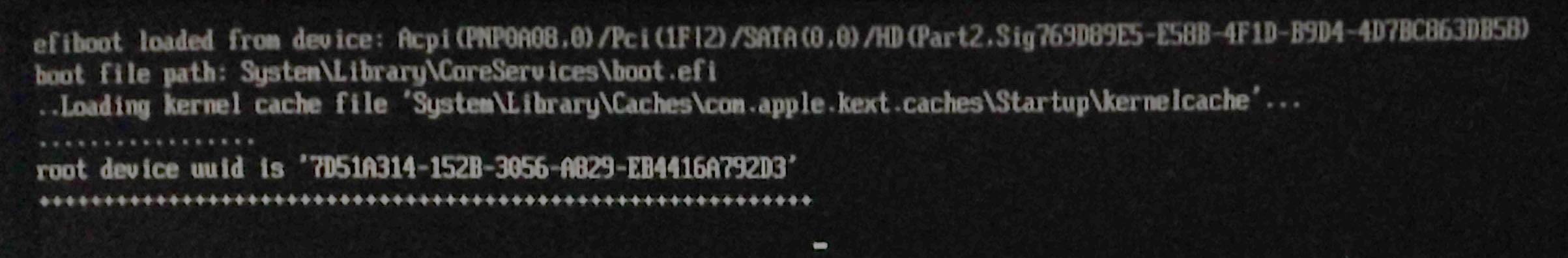 Er gibt gerade noch 4 Zeilen aus und nach "Loading Kernel Cache file..." startet der Rechner neu.