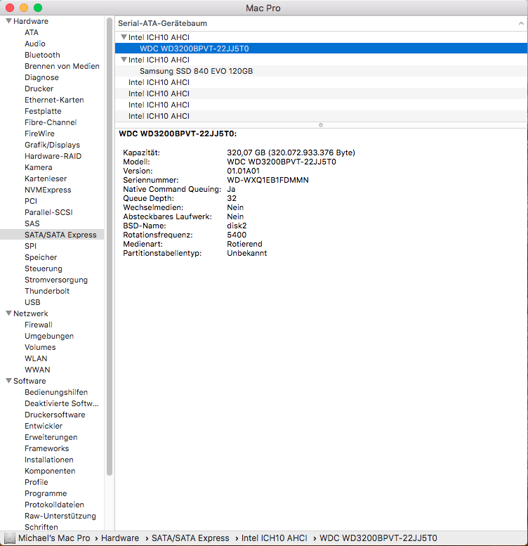 Deine EFI hat leider dazu geführt das Clover keine der beiden Platten mehr haben wollte. Theoretisch sind alle SATA Anschlüsse auf dem Board Über den Intel Chip angebunden (Laut Datenblatt PDF) wie das mit dem Zusatzcontroller ist finde ich schwierig rauszufinden.