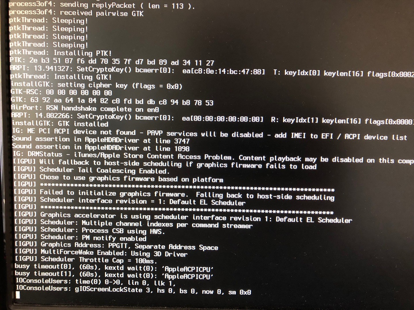 IOConsoleUsers: gIOScreenLockState 3, hs 0, bs 0, now 0, sm 0x0