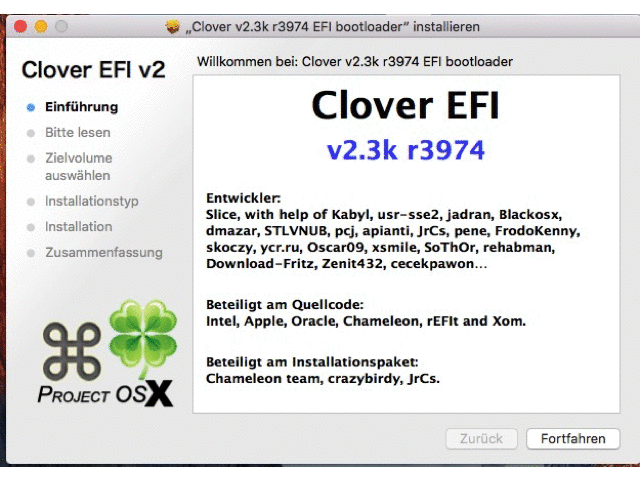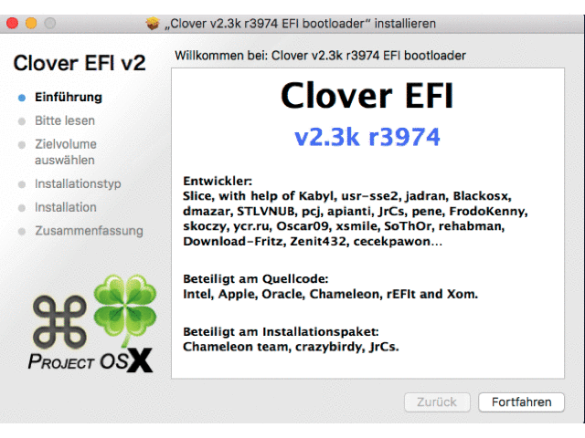 Mit Clover als Bootmanager die Festplatte beschreiben.
