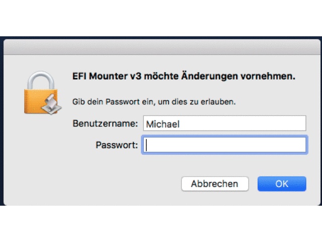 Danach müssen wir die EFI mounten. Entweder mit der App „EFI Mounter V3“ oder mit dem Terminal.