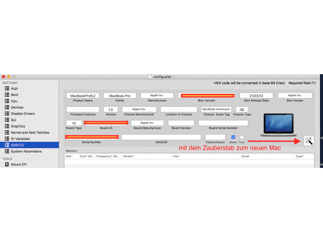 - SMBIOS (Zauberstab) MacbookPro (9.2) auswählen