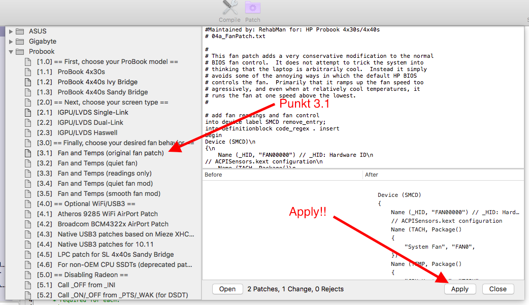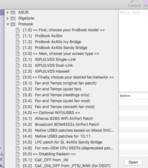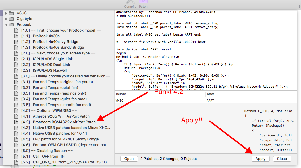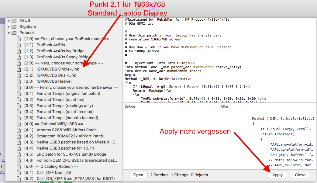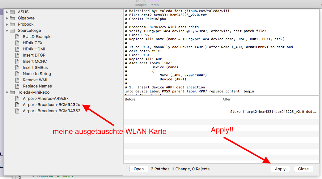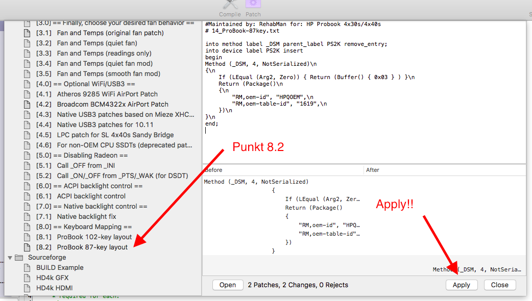 Anmerkung:Habe versucht die DSDT.aml nach Anleitung von RehabMan zu erstellen.Ob das der genau richtige Weg ist, kann ich nicht behaupten, aber meine selbsterstellte DSDT.aml funktioniert. Es gibt auch andere Lösungsansätze per Editoren.