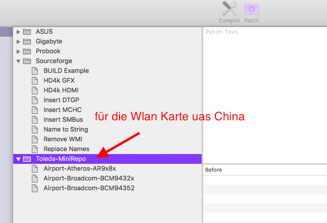Damit man diese ganzen Quellen nicht von „Hand zu Fuss“ eingeben muss habe ich heraus gefunden wo diese Quellen (Sources) am Mac abgelegt werden.Bitte bevor man die Datei im Ordner ersetzt, die App maciASL im Dock beenden.