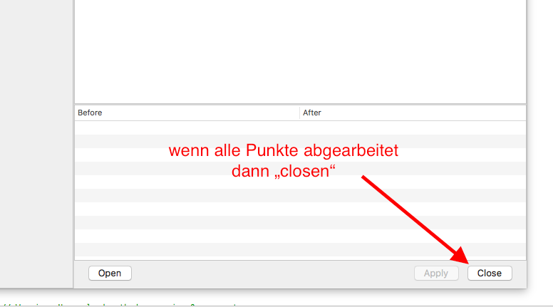 Nun wenn alle Punkte abgearbeitet sind "closen"