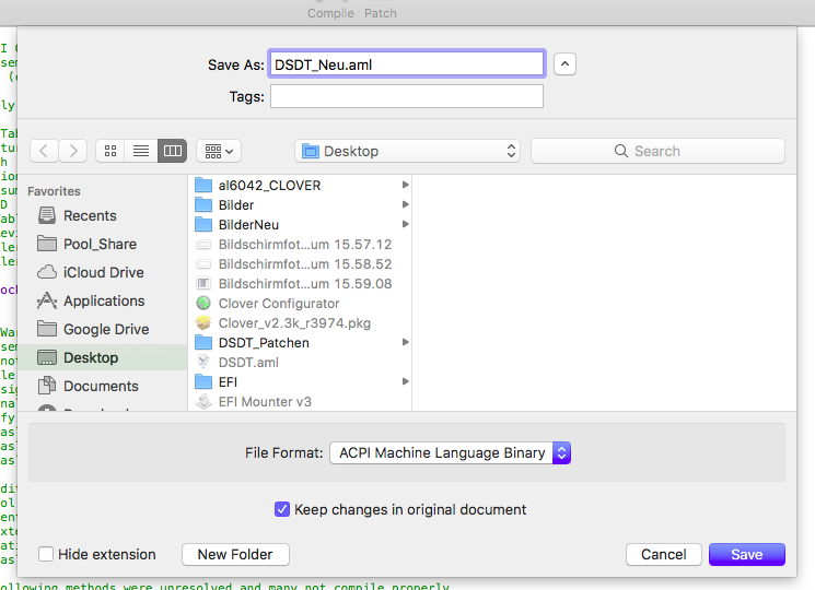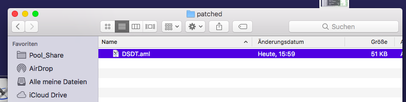 Danach die selbst gepatchte DSDT.aml nach EFI/CLOVER/ACPI/patched kopieren.