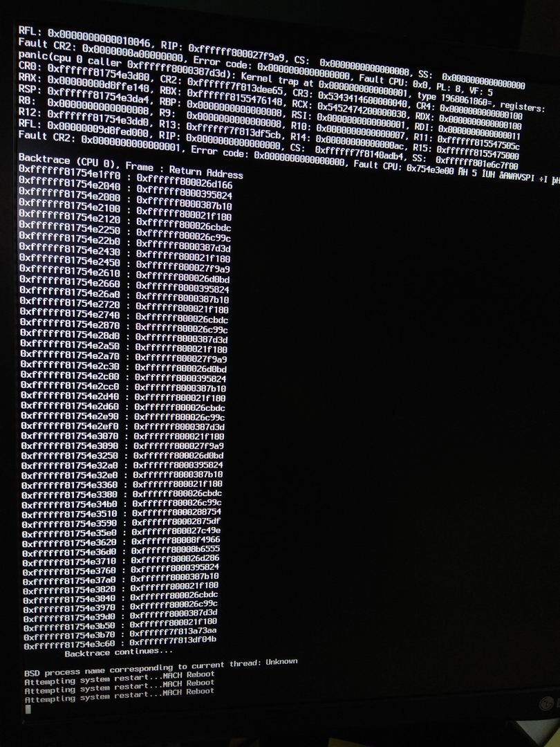 - last loaded kext at 8443510473: com.apple.driver.AppleUpstreamUserClient 3.6.5 (addr 0xffffff7f9a98f000, size 28672)